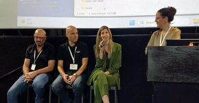 משתתפי הפאנל: משמאל - ירון ליבנה, אלעד שולמן, מאיה סטריקובסקי לזר והמנחה, צופית שחר.
