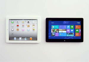 השם Siri אינו מוזכר בסרטון, אך קולה המוכר של הגבירה נשמע בבירור מתוך טאבלט שנראה כמו iPad, כשלידו נמצא ה-VivoTab של אסוס, שעושה כל מה שהיא לא יכולה ● "מצטערת", היא אומרת, "אני יכולה לעשות רק דבר אחד במקביל"