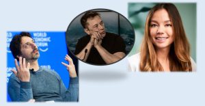 היוו משולש רומנטי? ניקול שנהאן, אילון מאסק, וסרגיי ברין. צילום: עיבוד ממחושב. לינקדאין, ויקיפדיה ופליקר (בהתאמה).