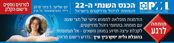 לקראת הכנס השנתי ה-21 של PMI, העמותה לניהול פרויקטים בישראל, יום ג', 5 ביוני, מלון דיוויד אינטרקונטיננטל, תל אביב"ניהול פרויקטים – התאמה למציאות משתנה"