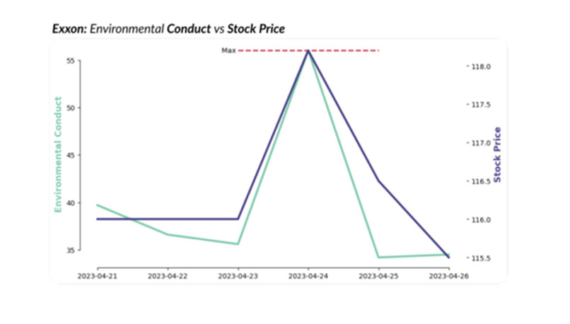 סנטימנט ה-Environmental conduct בקורלציה להתנהגות המניה. צילום: אינובסטה